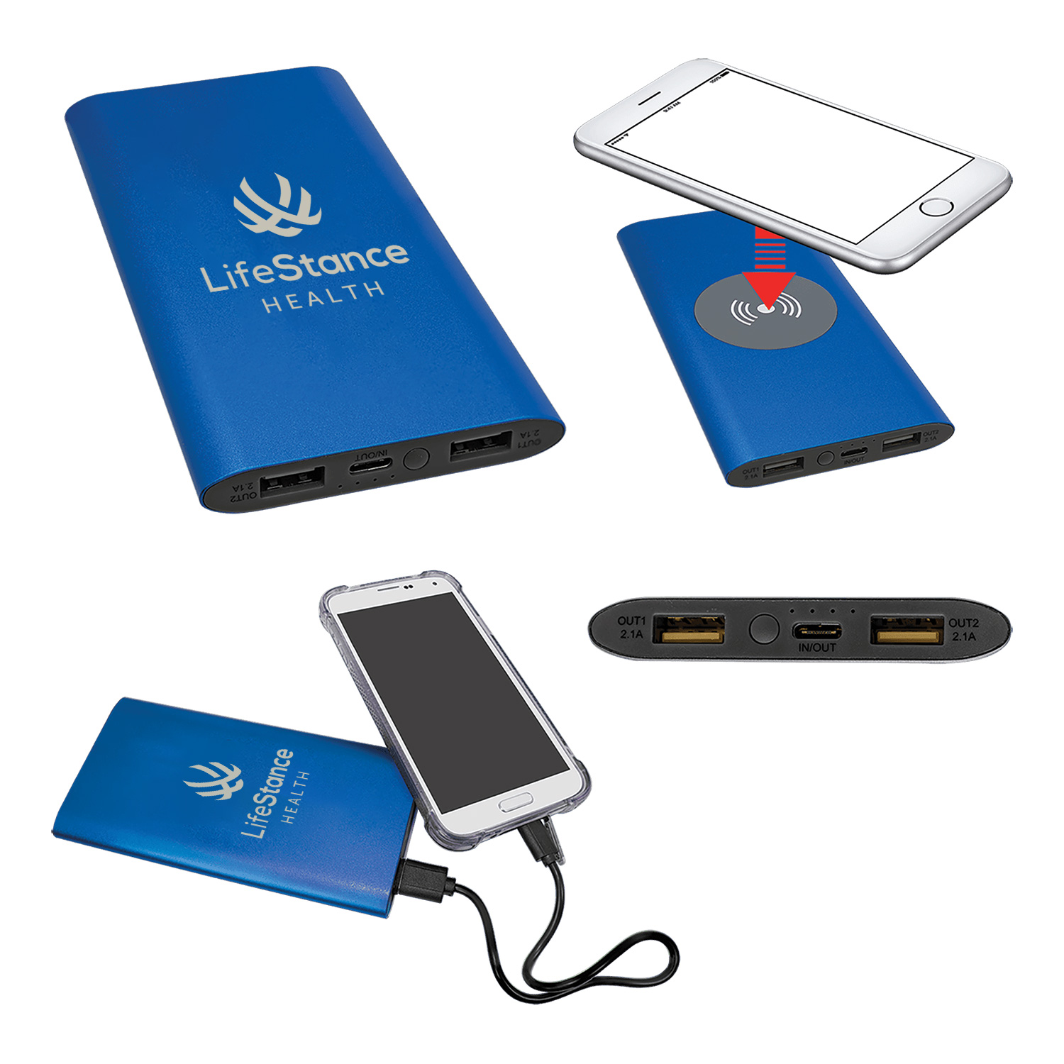 LifeStance 8000MAH Power Bank & Wireless Anodized Aluminum Charger with USB-C Cord